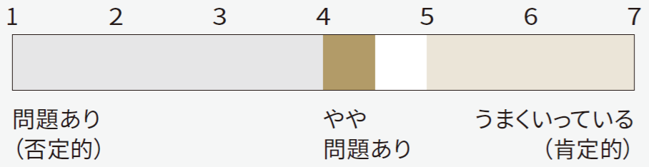 (7点満点で5~7点がうまくいっている(肯定的)と認知している状態)