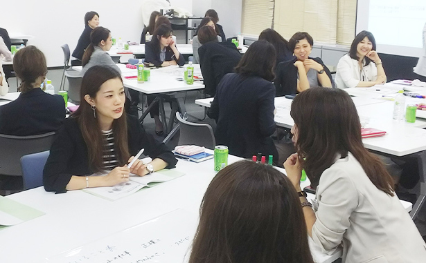 若手従業員を対象とした「ライフキャリア研修」や、育児休業から復帰し1年経過した従業員を対象とした「両立キャリア研修」では、事業の垣根を超えてグループワークを行い、自分のキャリアは自分で作るという考えの元、ライフイベントの際の働き方や中長期的なビジョンについて考えます。